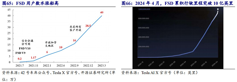 北美特斯拉FSD先行发展,为自动驾驶收费模式提供可行路径参考。特斯拉在北美的全自动驾驶(FSD)系统发展迅速,用户数量和累计行驶里程都在快速增长。截至2023年3月,FSD已有超过40万用户,并且行驶里程在2024年4月已超过10亿英里。2024年2月,特斯拉开始向更多用户推送FSD BetaV12.2.1,标志着其自动驾驶技术向更广泛的大众普及。FSD的持续迭代和发展不仅体现在技术和用户增长上,而且在商业上也形成了有效的闭环,2022年第四季度为特斯拉带来了3.24亿美元的收益,并创造了超过10亿美元的短期递延收益,长期毛利率预计可达90%。到2024年3月,FSD Beta升级为FSD Supervised,这标志着FSD功能的进一步成熟。