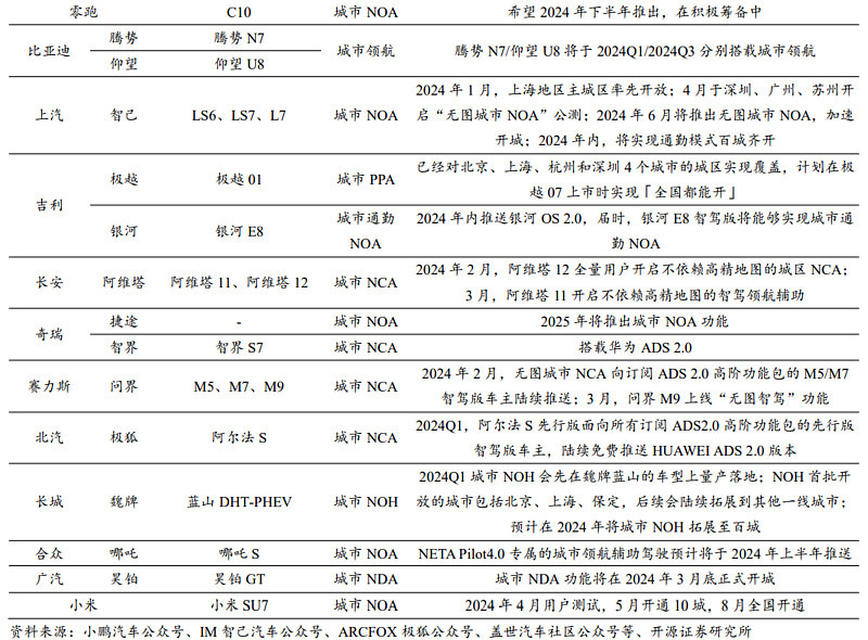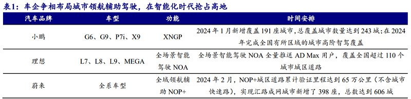 在2023年,有将近10家车企公布城市NOA方案的落地计划,2024年1月小鹏宣布XNGP城市智驾能够全量覆盖全国243城,2月问界也宣布无图城市NCA在全国范围开始推送,智能化时代之争愈演愈烈。城市NOA是自动驾驶领域的前沿,城市NOA量产意味着在自动驾驶争夺战中取得优势。