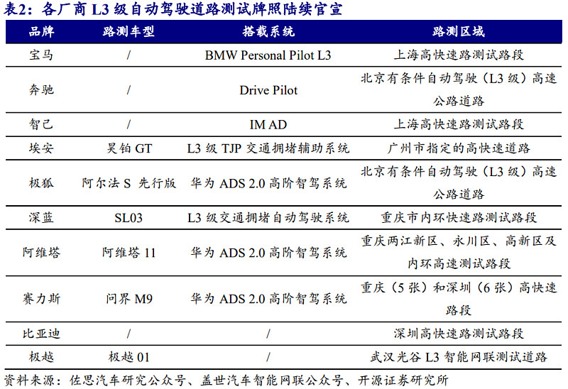 3、L3自动驾驶开始试点,自动驾驶功能落地指日可待