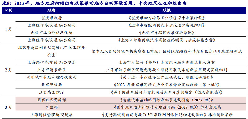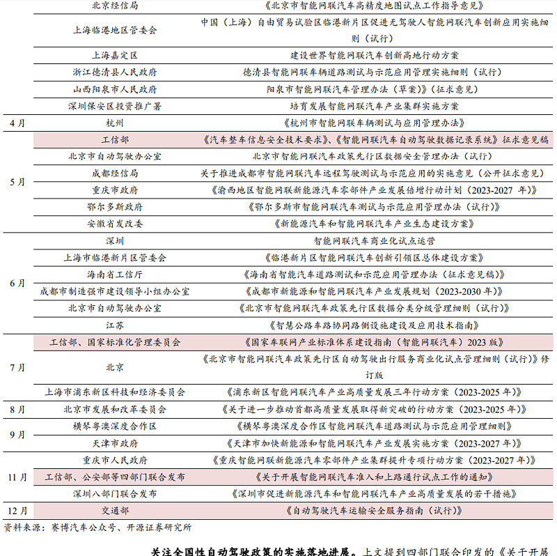 2023年11月,工信部等四部门联合发布《关于开展智能网联汽车准入和上路通行试点工作的通知》,取得准入的智能网联汽车产品,在限定区域进行L3级别自动驾驶试点。宝马、奔驰、阿维塔、深蓝、极狐、智己、赛力斯、比亚迪、埃安等主机厂随即宣布L3级别自动驾驶测试牌照,并宣布在北京、上海、重庆和深圳等地区开启测试。L3级自动驾驶试点测试标志着自动驾驶技术进入新的发展阶段,准入车企的逐步扩展和自动驾驶产品的陆续落地,有望大幅推动自动驾驶功能进一步迭代。