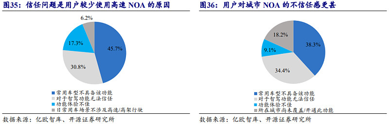 不信任是不愿意使用自动驾驶的最大原因,低接管率、高拟人化塑造信任。自动驾驶能够给用户提供更多的舒适体验,但是即使车型带有自动驾驶功能,仍有相当的用户群体很少使用,用户不是因为热爱驾驶,而是为了获得更多的心理安全感。自动驾驶与平时的驾驶模式相背,驾驶员与自动驾驶的信任感难以短时间建立。根据亿欧智库数据,2023年有62.5%的用户需要接管高速NOA功能1-2次/100公里,有48.6%的用户需要接管城市NOA功能0-2次/30公里,整体接管率仍不能让人满意。频繁的接管在行驶过程中会为驾驶员带来较多的负面反馈,如果能够做到接近于零的接管,对于驾驶员而言就可以放心将驾驶主导权交给汽车。小鹏汽车提出未来XNGP的接管率目标是核心区域每千公里被动接管次数少于1次。更广大消费者需要好用的自动驾驶,而不是科技领先的自动驾驶,在这方面自动驾驶仍需完善。