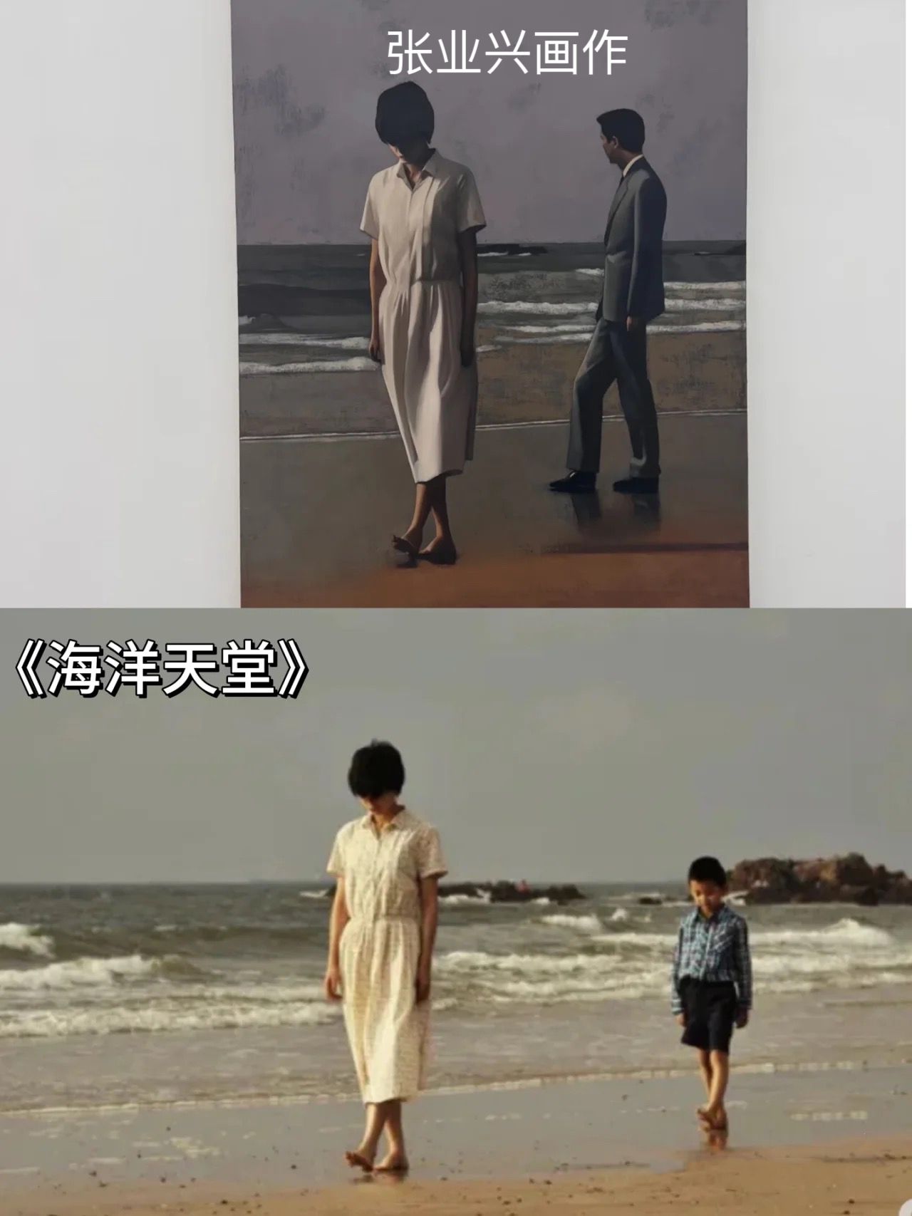 电影《海洋天堂》截图与张业兴画作对比。图源:网络