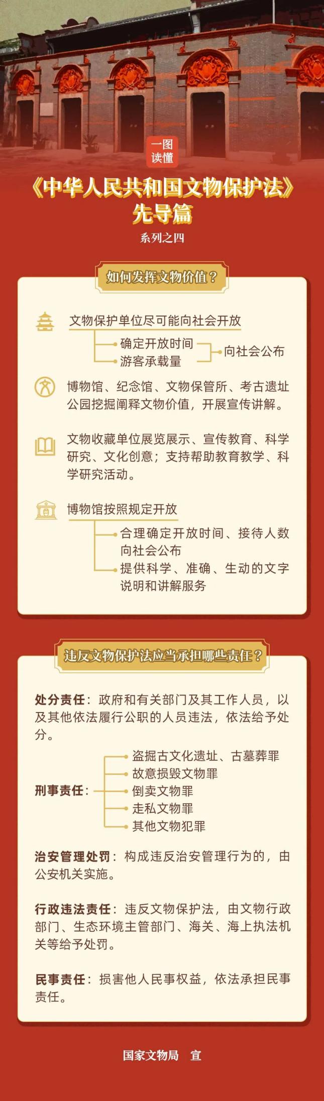 第十条 国家发展文物保护事业,贯彻落实保护第一、加强管理、挖掘价值、有效利用、让文物活起来的工作要求。