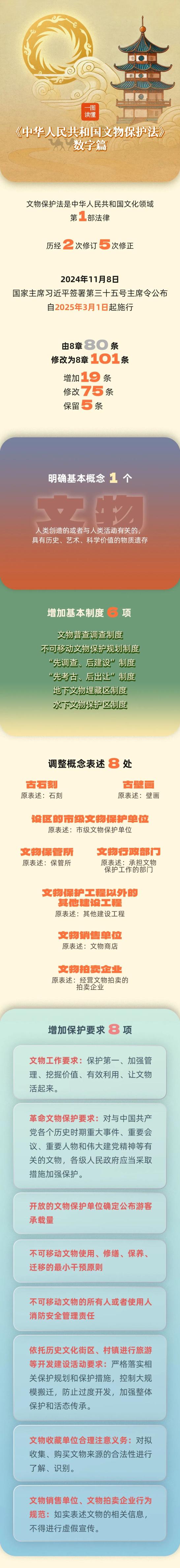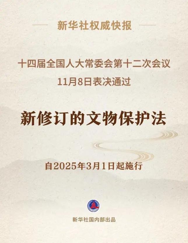 (1982年11月19日第五届全国人民代表大会常务委员会第二十五次会议通过 根据1991年6月29日第七届全国人民代表大会常务委员会第二十次会议《关于修改〈中华人民共和国文物保护法〉第三十条、第三十一条的决定》第一次修正 2002年10月28日第九届全国人民代表大会常务委员会第三十次会议第一次修订 根据2007年12月29日第十届全国人民代表大会常务委员会第三十一次会议《关于修改〈中华人民共和国文物保护法〉的决定》第二次修正 根据2013年6月29日第十二届全国人民代表大会常务委员会第三次会议《关于修改〈中华人民共和国文物保护法〉等十二部法律的决定》第三次修正 根据2015年4月24日第十二届全国人民代表大会常务委员会第十四次会议《关于修改〈中华人民共和国文物保护法〉的决定》第四次修正 根据2017年11月4日第十二届全国人民代表大会常务委员会第三十次会议《关于修改〈中华人民共和国会计法〉等十一部法律的决定》第五次修正 2024年11月8日第十四届全国人民代表大会常务委员会第十二次会议第二次修订)