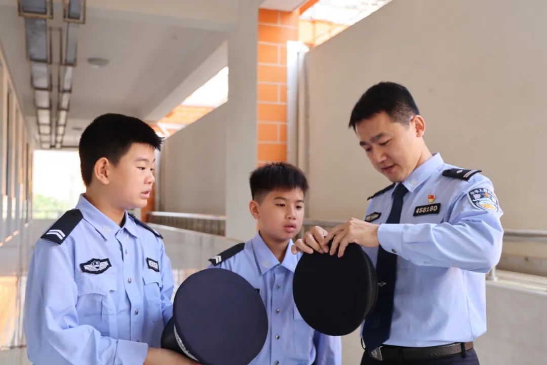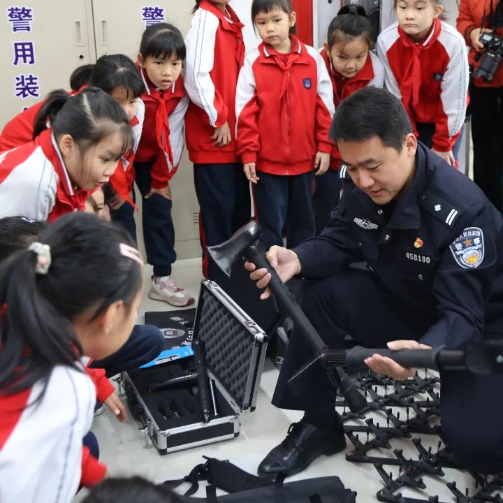 在法警装备室,司法警察大队副大队长朱胤帆向同学们现场展示了法警的各类警械装备。