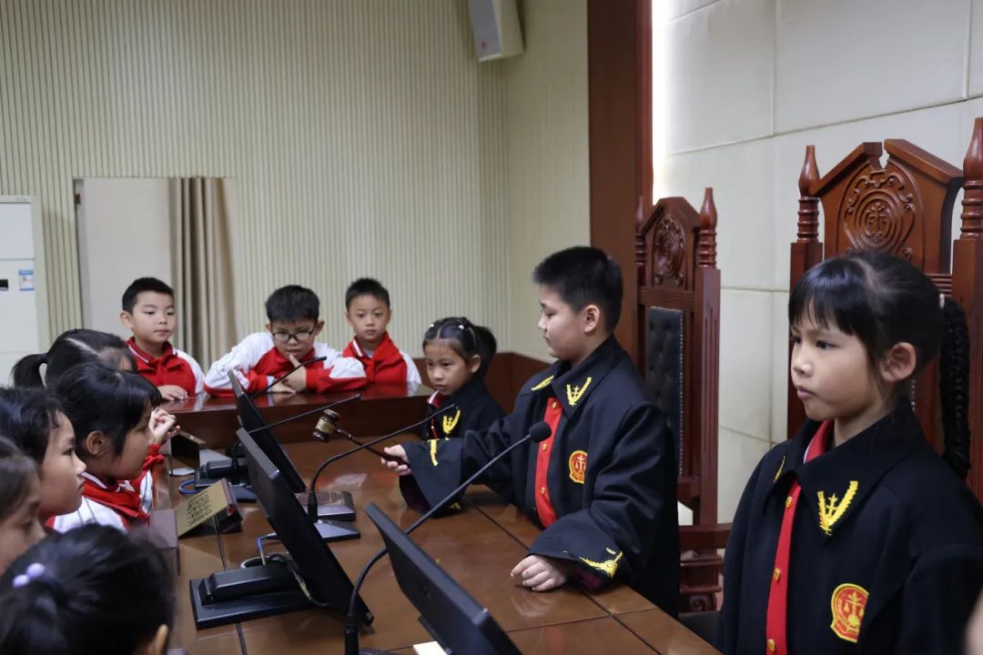 为深入学习贯彻习近平法治思想,切实做好预防未成年人犯罪和强化未成年人保护工作,河池市金城江区人民法院在2024年11月期间,到金城江区各初级中学、小学积极开展“与法同行·守望成长”少儿法治宣传教育月系列活动,法官们纷纷化身指导员、宣讲员、培育员,将“请进来+走出去”相结合,以模拟法庭、法治课堂与法院“开放日”等形式,为广大少年儿童带去了干货满满、丰富多彩的法治“大礼包”。