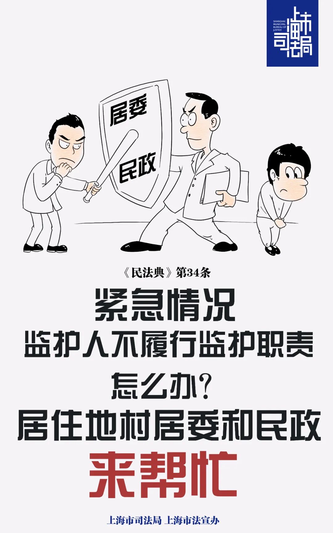 监护人不履行职责怎么办?遇见“套路贷”怎么办?老人无子女赡养怎么办?这些问题在民法典上都能找到答案。近日,上海市司法局与上海市法宣办联合推出民法典系列海报,一起来看↓↓↓