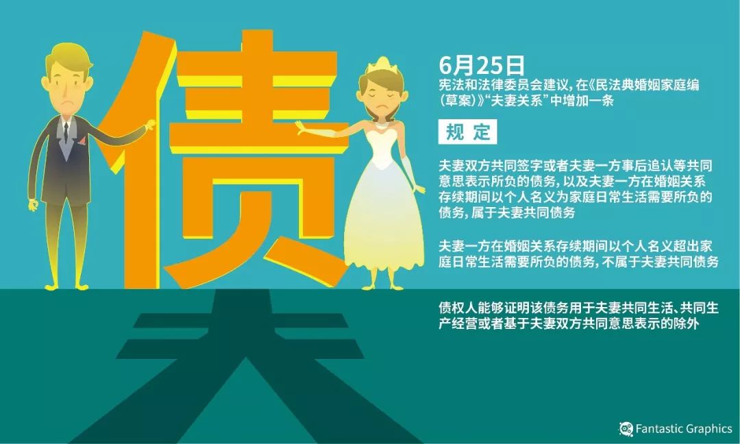 25日,民法典婚姻家庭编草案二审稿提交全国人大常委会审议,拟将夫妻债务“共债共签”原则写入其中。