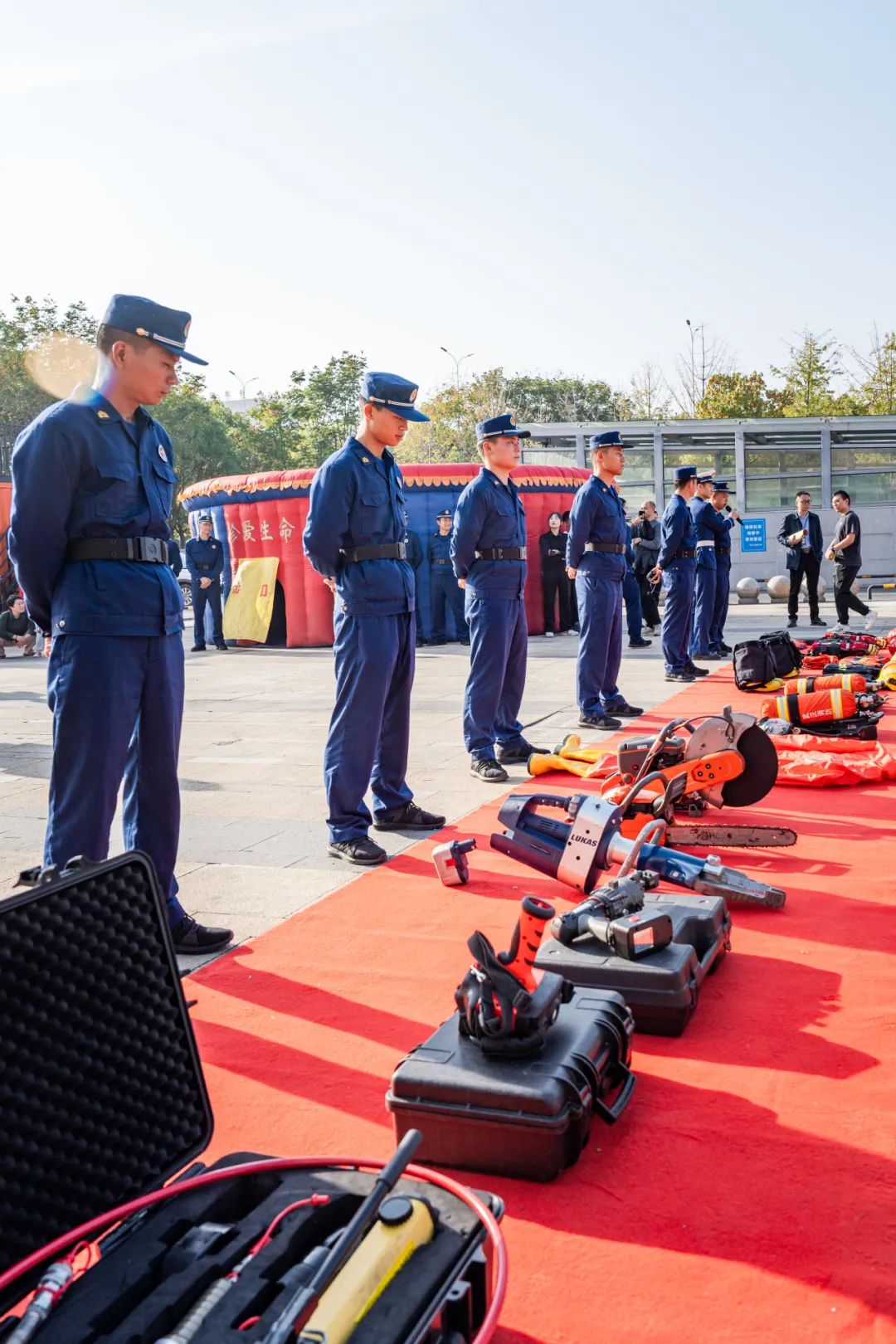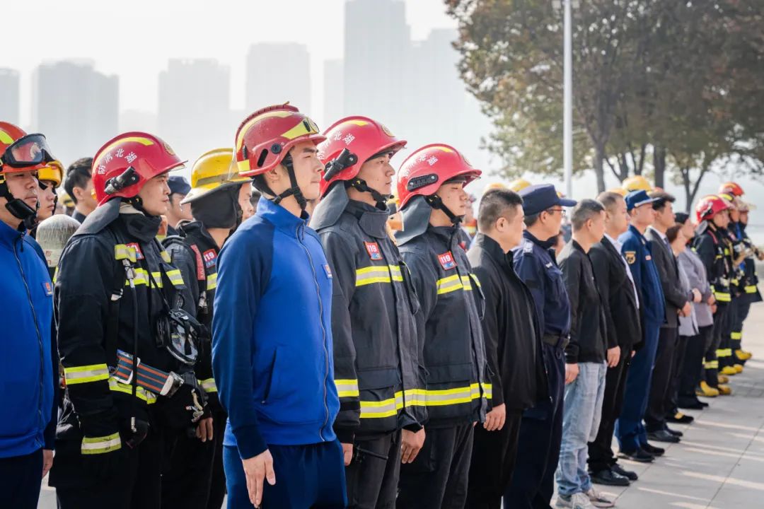 2024年武汉市消防宣传月启动仪式暨高层建筑灭火救援实战拉动演练,在武汉市东西湖区金银湖大厦199+购物中心隆重举行。