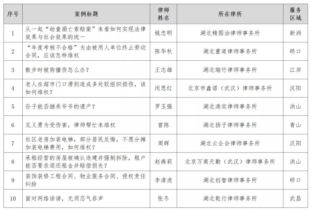 按照武汉市司法局《关于开展2021年村(居)法律顾问办理典型案例评选活动的通知》要求,全市村(居)法律顾问踊跃参与。