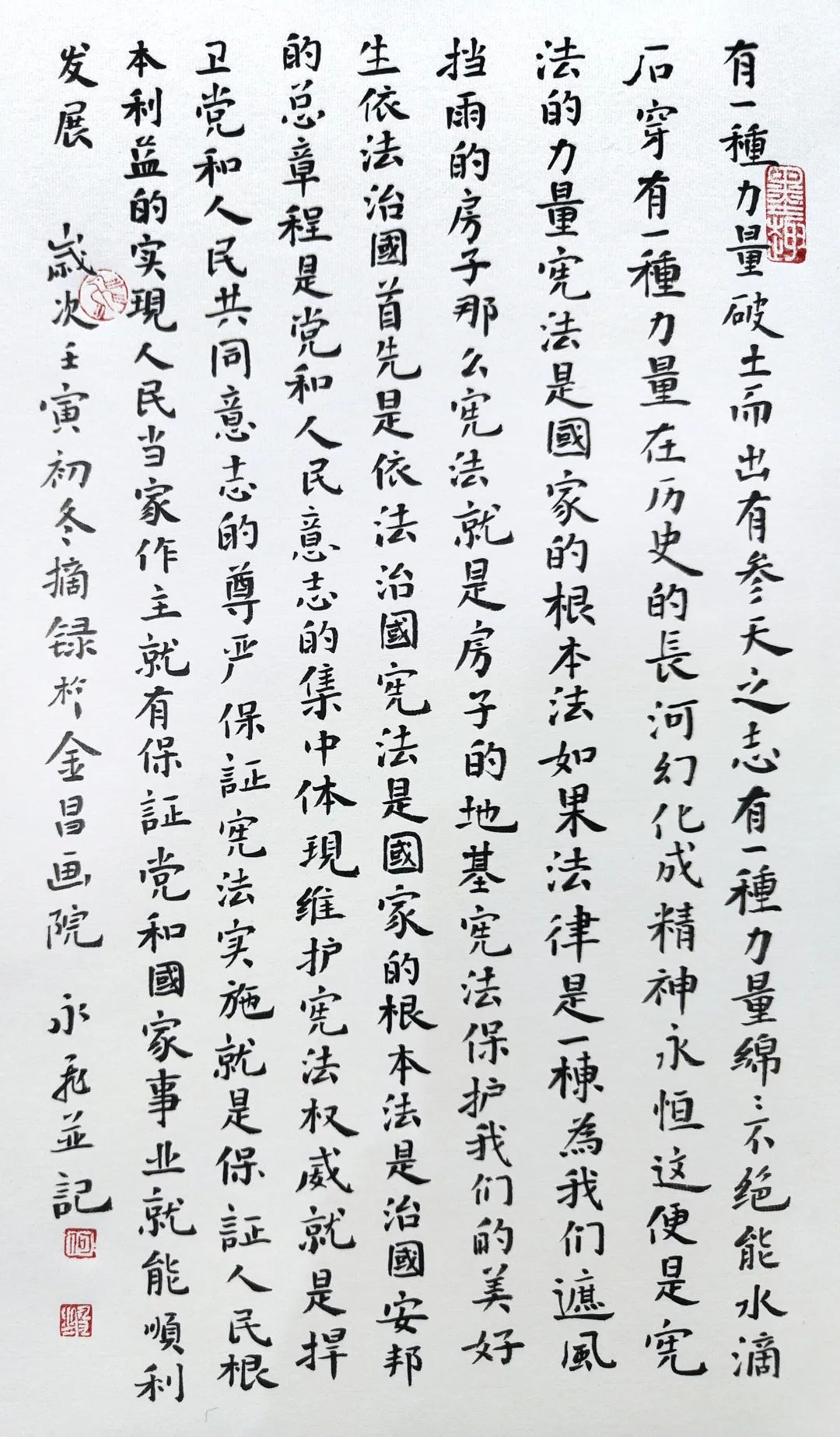 原标题:《行云流水起笔端 翰墨书香颂宪法——“宪法宣传周”线上书法作品展(四)》