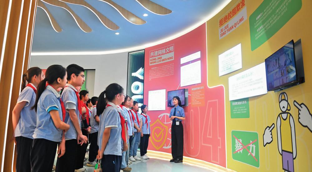 浙江省台州市仙居县安洲小学的学生在未成年人法治教育基地了解防校园欺凌的法律知识(2024 年 5 月 10 日摄)黄宗治摄 / 本刊