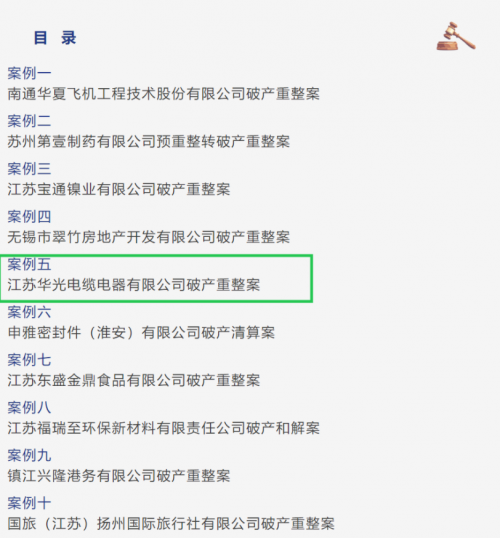 2024年4月11日,江苏省高级人民法院公布《2023年江苏法院破产审判典型案例》,江苏源博律师事务所破产团队所承办的江苏华光电缆电器有限公司破产重整案成功入选。