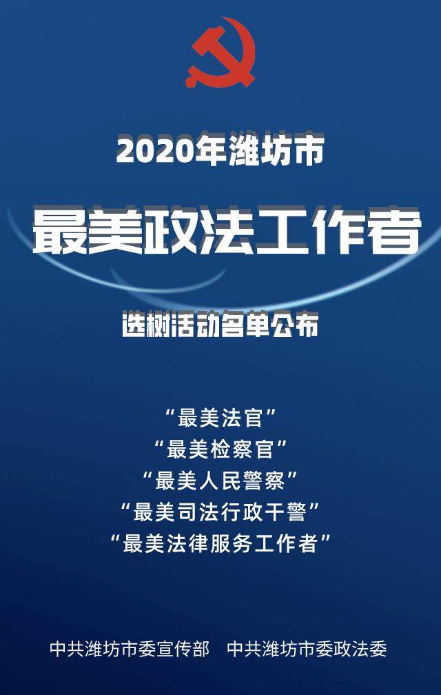 为全面展现新时代政法战线工作者信念坚定、执法为民、敢于担当、清正廉洁的良好形象,积极打造优质法治化营商环境,潍坊市委政法委、市委宣传部联合组织开展了全市“最美政法工作者”系列选树活动,经过推荐、投票、研究、公示等程序,史慧霞等50名同志当选,现将名单(以姓氏笔画为序)予以发布。