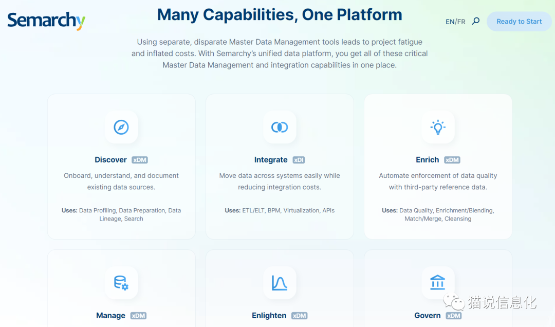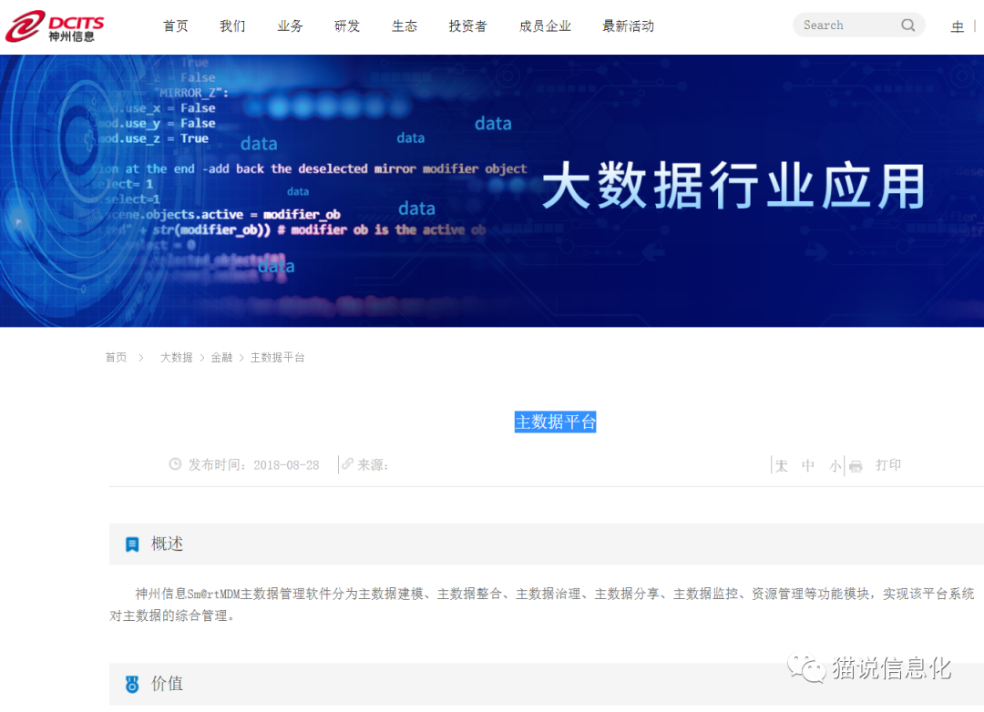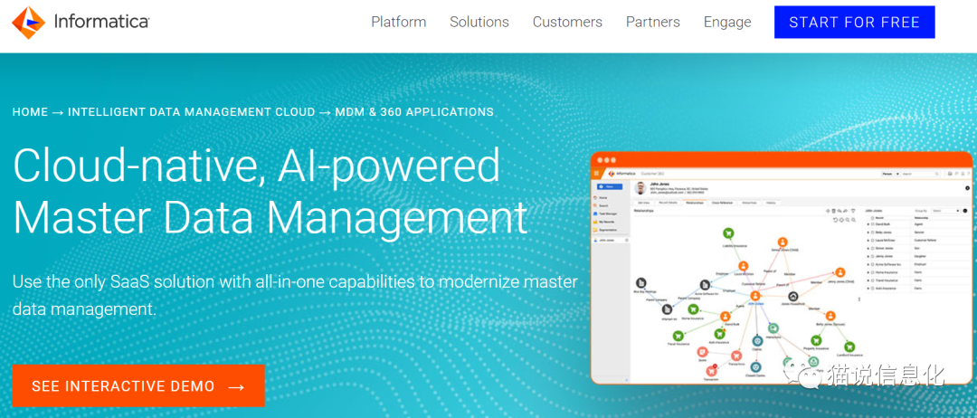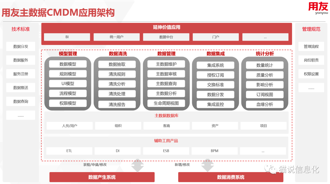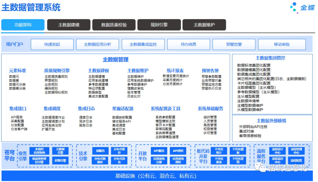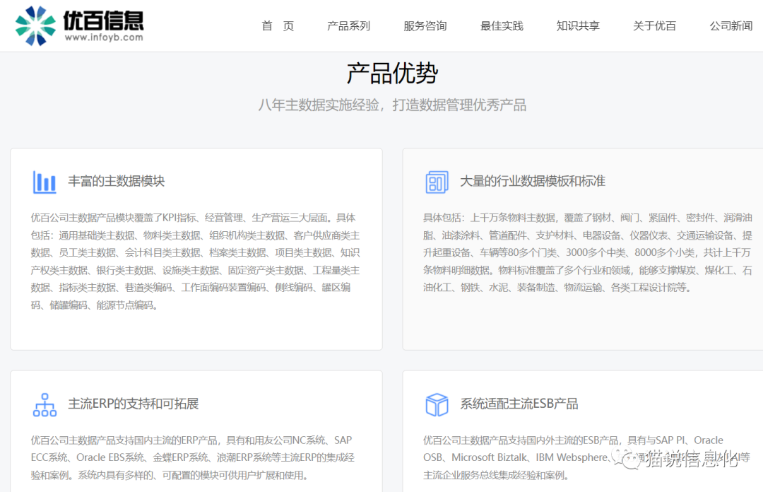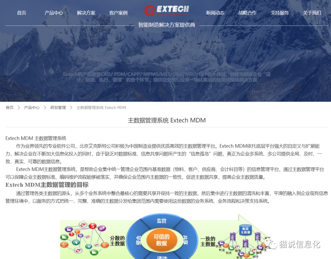 在多系统集成时主数据管理系统(MDM)是很常用的软件,例如异构系统之间,跨组织应用的系统之间。因为很常用,所以开发主数据管理软件产品的厂商也很多,首先是以包括主数据管理系统为主要产品的一些专业的数据管理类软件厂商,而且这些厂商不少都是从主数据管理起步逐渐发展为综合性数据软件厂商的,例如三维天地、美林、亿信华辰等。还有一些专业数据类软件厂商开展过主数据业务,但现在从其官方资料中不能直接找到主数据的内容,可能是涵盖在其大数据平台、数据治理平台等产品中了,这部分厂商本文暂不介绍。其次是包括以ERP软件产品为核心的企业管理软件厂商,例如用友、金蝶、浪潮、SAP等,较多的企业信息化项目是以ERP系统为核心按需集成相关应用系统的,那么为了更好的实现集成,ERP软件厂商就相应开发了主数据管理软件产品。再例如一些有规模的、综合性的企业信息化厂商,因为这些厂商承建的很多项目都有大量的系统集成内容,所以也开发了自己的主数据管理软件,比如汉得、元年、石化盈科、昆仑数智、英诺森、软通动力等。还有若干种情况,总的来说,如果厂商经常要实现系统集成应用,往往就会开发自己的主数据管理软件产品。此处需要说明的是,主数据首先是用于系统集成的,主数据管理是为了实现系统集成时数据和业务的互通互联,保障主数据的唯一性、标准性和共享性的,进而保障业务数据的一致性。所以很多年前在面向服务的体系架构下(SOA),与企业服务总线系统(ESB)一起,很好的解决了系统集成的问题。而主数据作为数据的一种,自然也会被列入数据治理的范畴内,并随着近些年开始被广泛重视的数据治理而被进一步关注到,但实际上主数据以及主数据管理系统是远远早于数据治理热潮之前就被广泛应用的,主数据管理软件的产品也已很成熟,并且也随着技术的发展,在本地部署的产品之外也出现了云版本的产品,为用户提供了更多的选择。