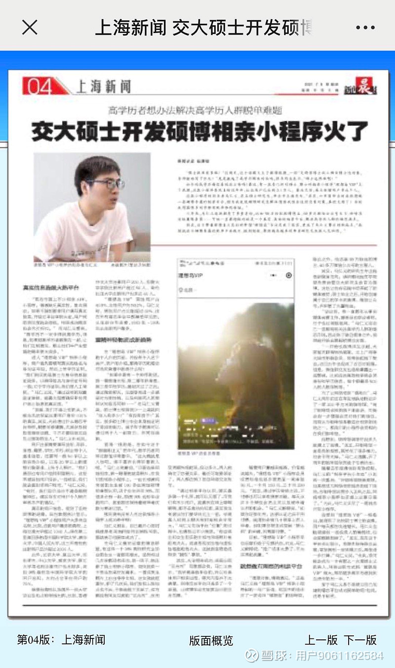 高学历者想办法解决高学历人群脱单难题”,这款硕博相亲小程序推出后不久,便被上海《新闻晨报》报道。