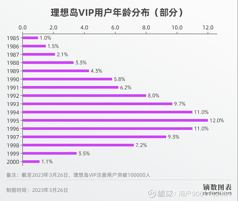 根据《2023理想岛VIP用户报告》,理想岛VIP用户中90后最多,占83.7%。90后用户中又以1995年出生的用户最多