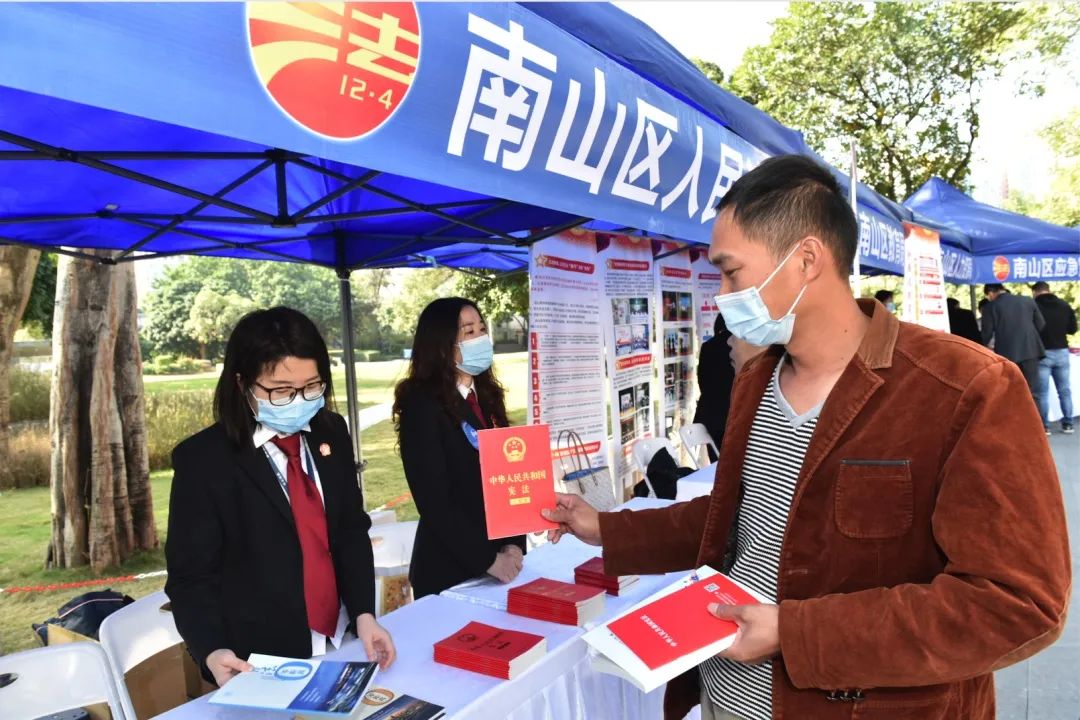 12月4日上午,南山法院在南山区2020年“12.4”国家宪法日暨“宪法宣传周”活动南头古城主会场,进行现场普法宣传及法律义务咨询。活动中,南山法院法官及法官助理通过摆放宣传展板、接受法律咨询、发放宣传资料等方式,广泛宣传《中华人民共和国宪法》《中华人民共和国民法典》等内容,提升人民群众的法治意识。同时,法院干警们解答群众关心的婚姻家庭、劳动争议纠纷等法律问题,引导群众运用法律武器维护自己的合法权益。
