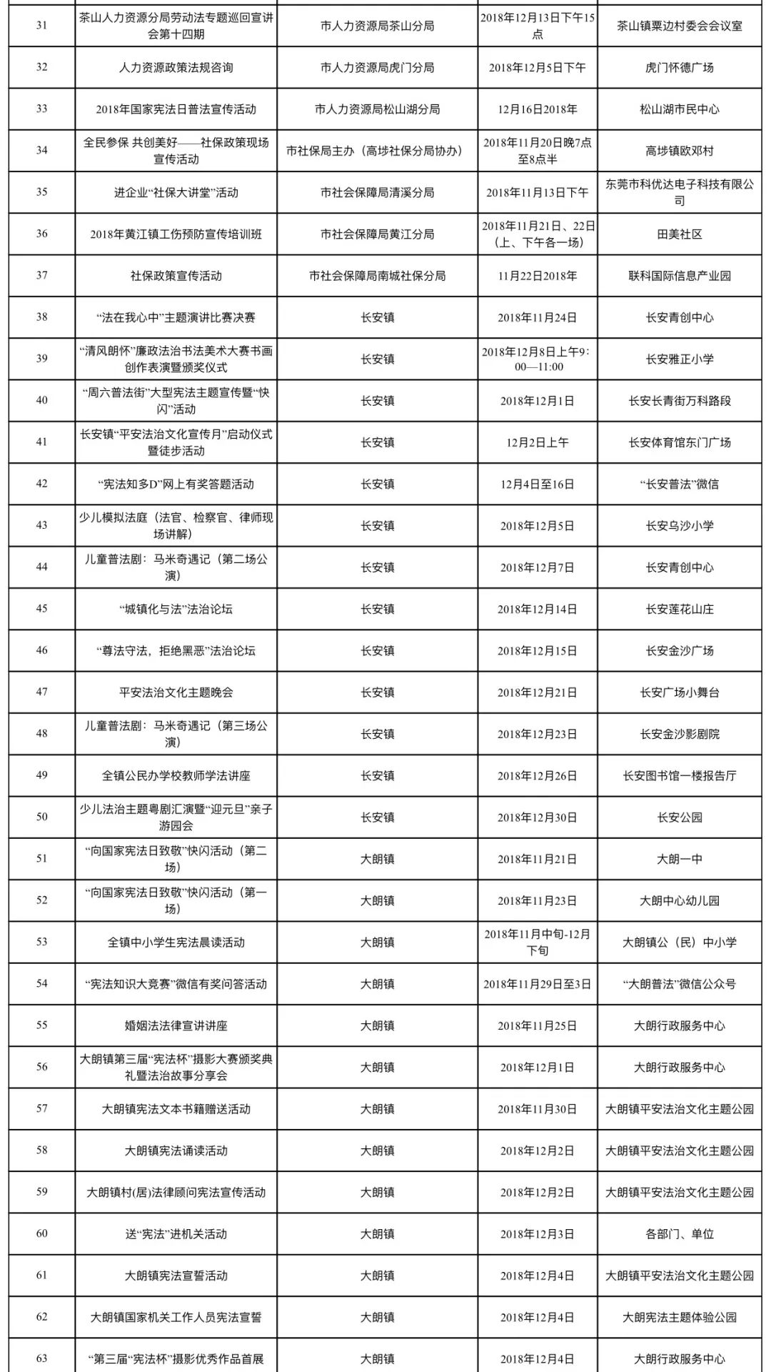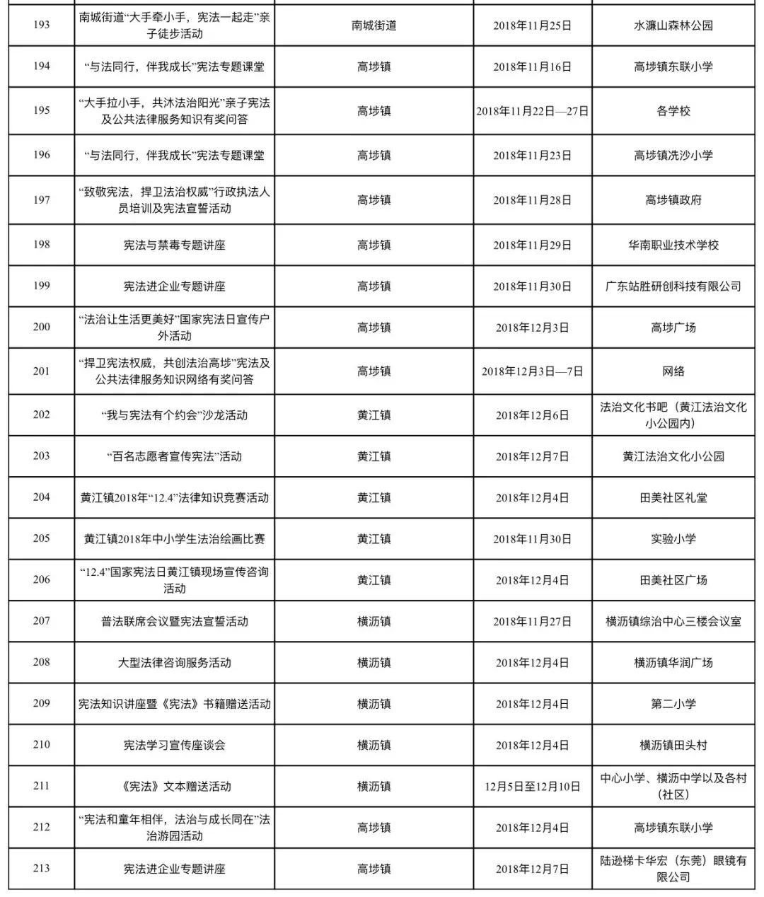 各镇街和市直部门将举办200多项形式多样精彩纷呈的法治宣传活动(详见文末图表)。其中,12月1日至7日,阳光台App将通过视频直播部分系列活动,并利用线上线下相结合的形式开展学习教育活动。