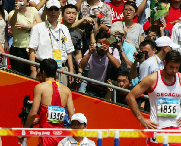 2008年8月18日,国家体育场,北京奥运会田径项目男子110栏预赛,刘翔遗憾因伤退赛。