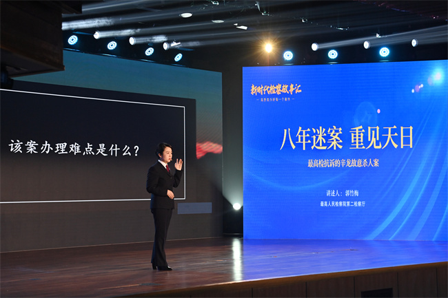 一男子杀害女友后制造坠亡假象被判无罪,被害人家属申诉到最高检后,第二检察厅主办检察官郭竹梅接手了这起案件。“从有罪到无罪是拆房子,从无罪到有罪是搭房子……”汇报会现场,郭竹梅向大家分享了补强证据的三年“搭房子”过程。当该男子被改判死缓后,郭竹梅完成了查明真相、追诉犯罪的职业使命,台下观众为有错必纠的检察坚守所感动,现场响起了阵阵掌声。