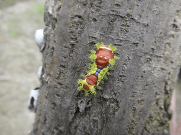 别看它颜色鲜艳漂亮,刺蛾浑身布满了刺,受惊扰时它会用这些毒刺蜇人,引起皮肤红肿痒痛。