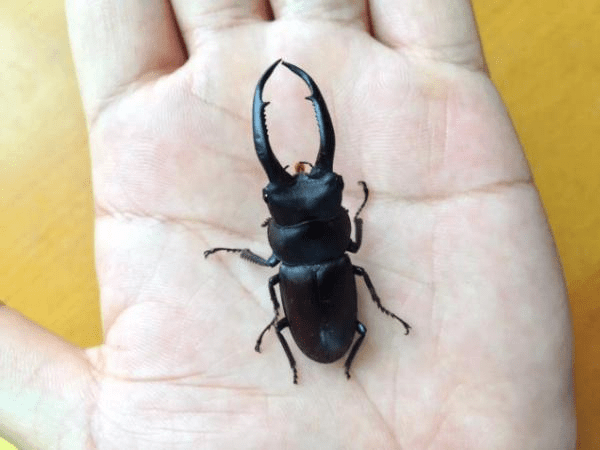 锹甲是一种好斗的昆虫,强大的上颚是作战的武器。若不小心被锹甲夹住手指,痛感强烈,千万不可小觑。