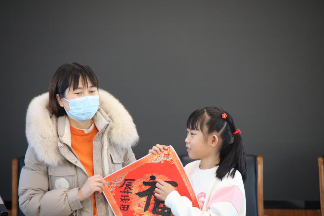 小朋友向大家展示了自己写的福字。她说:“红色象征着喜庆、吉祥和热情,福字代表了幸福、和睦。作为新时代的青少年我们一直生活在幸福、和睦、吉祥的环境之中”。