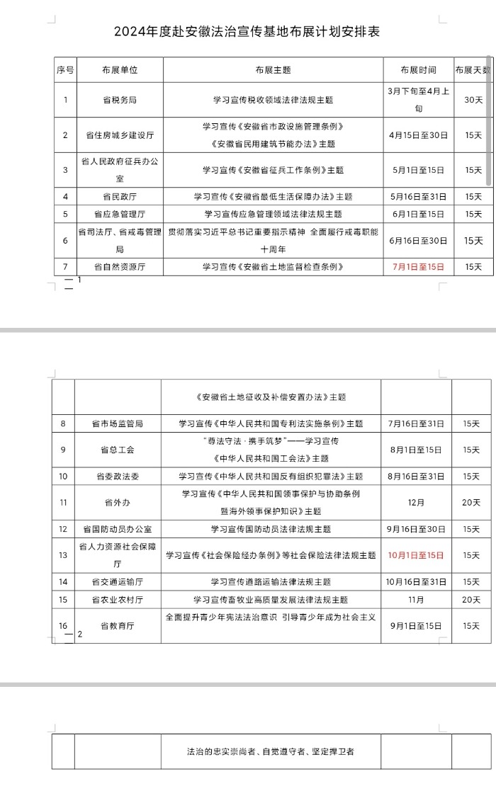 安徽将开展16场跨年系列主题普法活动