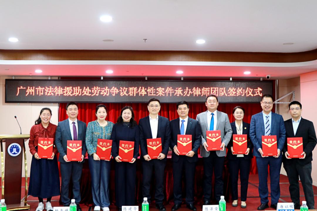 广州市法律援助处与广东秉甲律师事务所等九家律师事务所签订《律师团队承办劳动争议群体性法律援助案件合作协议》,约定律师团队在所在律师事务所统筹指导及带队律师的具体组织下,承办广州市法律援助处指派的20人以上群体性劳动争议案件,为群体性劳动纠纷提供统一、高效的法律服务,促进社会和谐稳定。