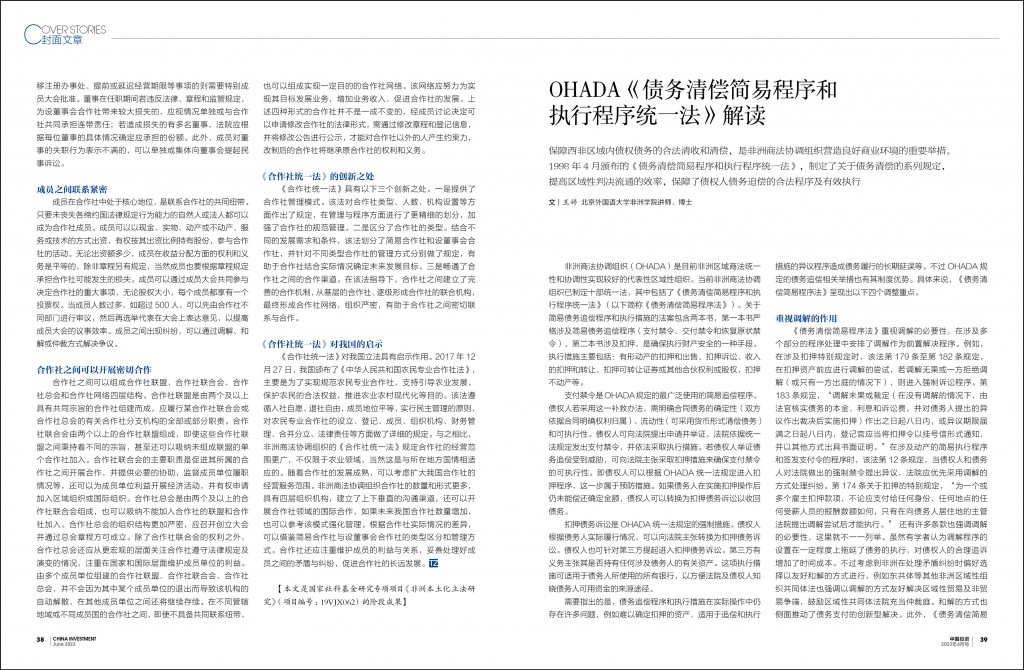 ● OHADA《合作社统一法》解读 / 朱伟东  许颖