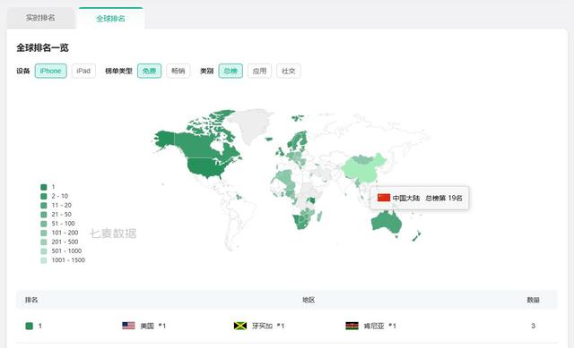 小红书目前在美国总榜排第1名,在中国大陆排第19名。七麦数据