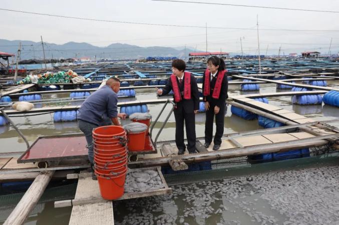 霞浦县检察院检察官走上渔排了解渔业生产情况。