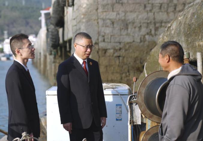 漳州市龙海区检察院检察官深入渔港码头开展普法宣传。