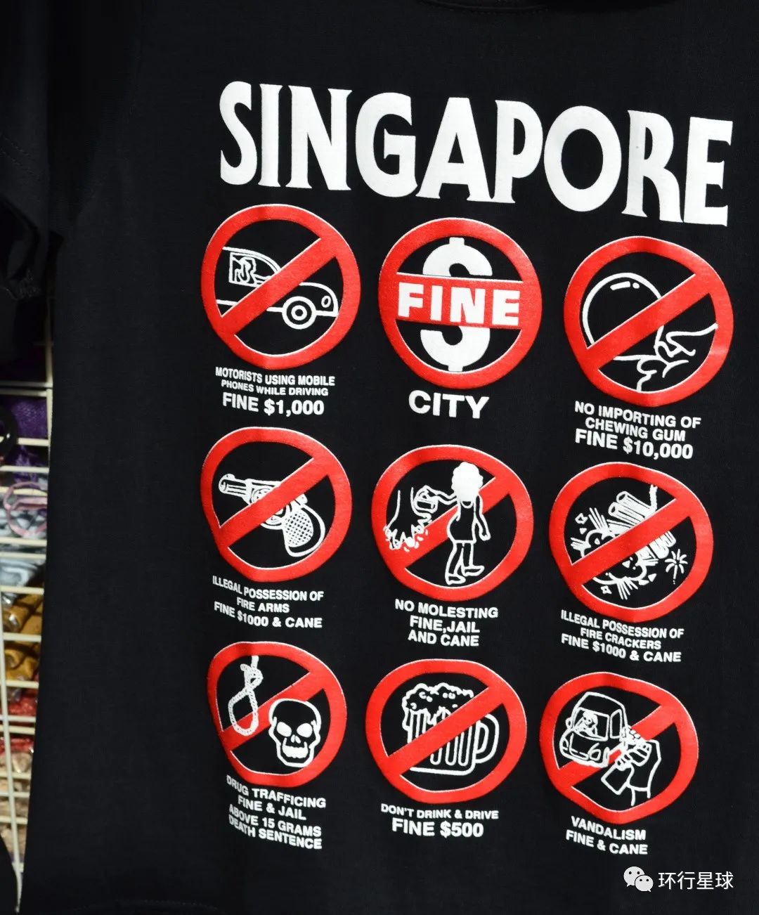 当然,新加坡这些繁琐的法律法规,并非只是针对自家国民,任何来新加坡旅行或生活的外国人,也必须遵守。然而对于初来乍到的外国人,很可能会由于不了解这些而中招。因此,新加坡的很多商店里,经常会售卖标明各项罚款项目的冰箱贴、T恤等纪念品,以提醒外来游客不要触犯法律。