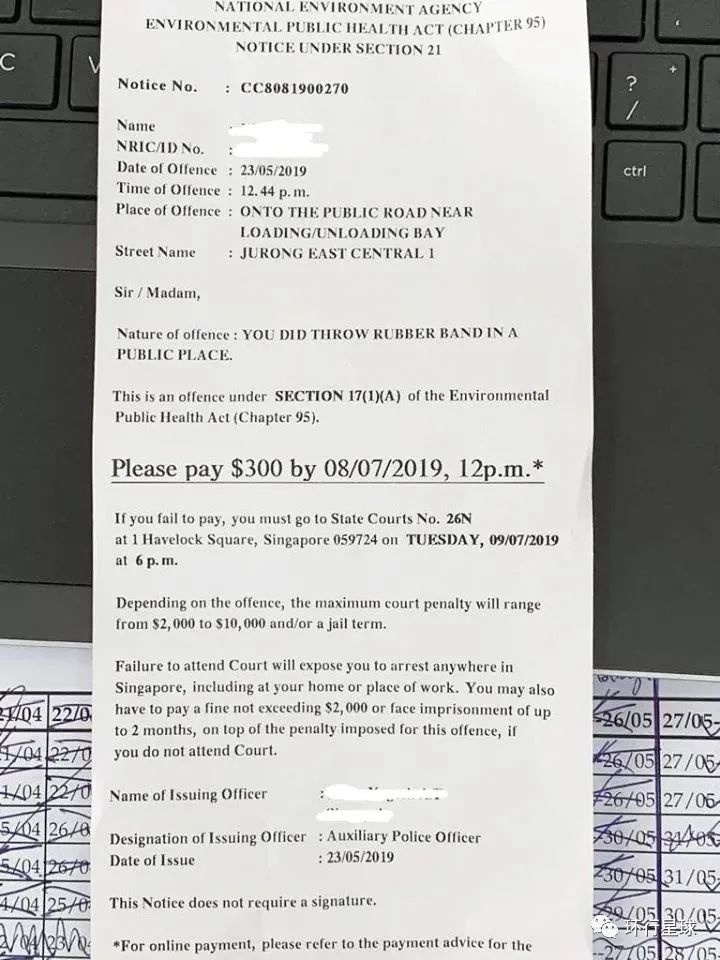 据悉,这张要价300新元的罚单是在裕廊东发出,而接到相关罚单的理由,竟然是在公路上丢弃橡皮圈。