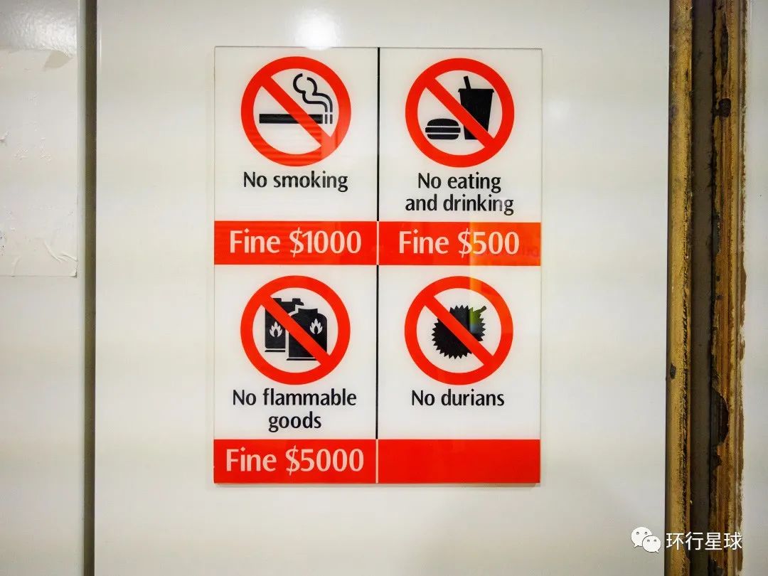 新加坡法律禁止地铁上吸烟、饮食、易燃产品和榴莲