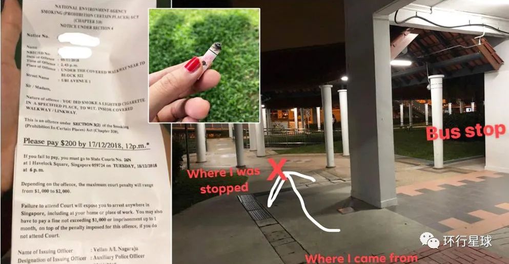 这位小姐姐发Facebook表示,她只是拿着烟头,从家走到巴士站,结果被抓,罚200新币!