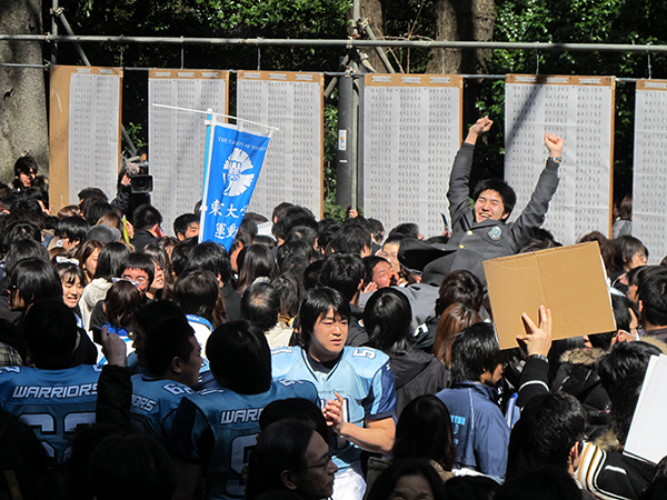 每年3月10日东京大学放榜日,上榜学生被东大学生社团的学长们高高抛起。