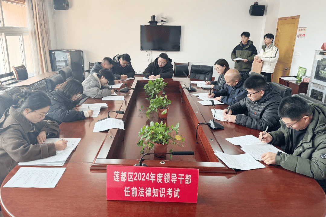 莲都区举行领导干部任前法律知识考试,共有16名新任职领导干部参加考试。考试采取集中、限时、闭卷的形式,内容涵盖习近平法治思想、宪法、民法典、行政复议法、党内法规等与领导干部履职密切相关的基本法律法规知识,旨在以考促学,进一步提升领导干部运用法治思维和法治方式处理问题的能力。