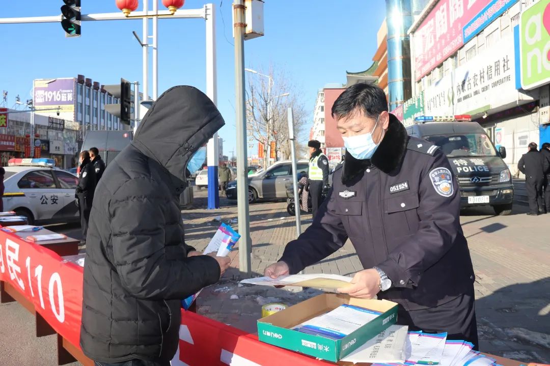 开鲁县公安局指挥中心联合多警种深入辖区主要街道、人员密集区域设立110宣传点,发放宣传品,与群众深入交流,讲解法律知识和公安工作,进一步深化了警民联系。