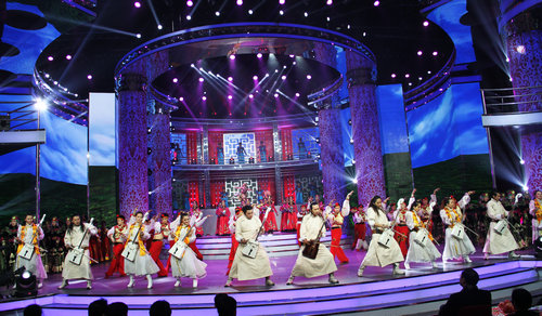 张傲迪雅(右一)和东方神骏乐团团长香丹同台演出