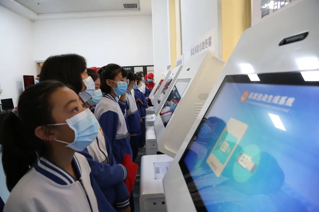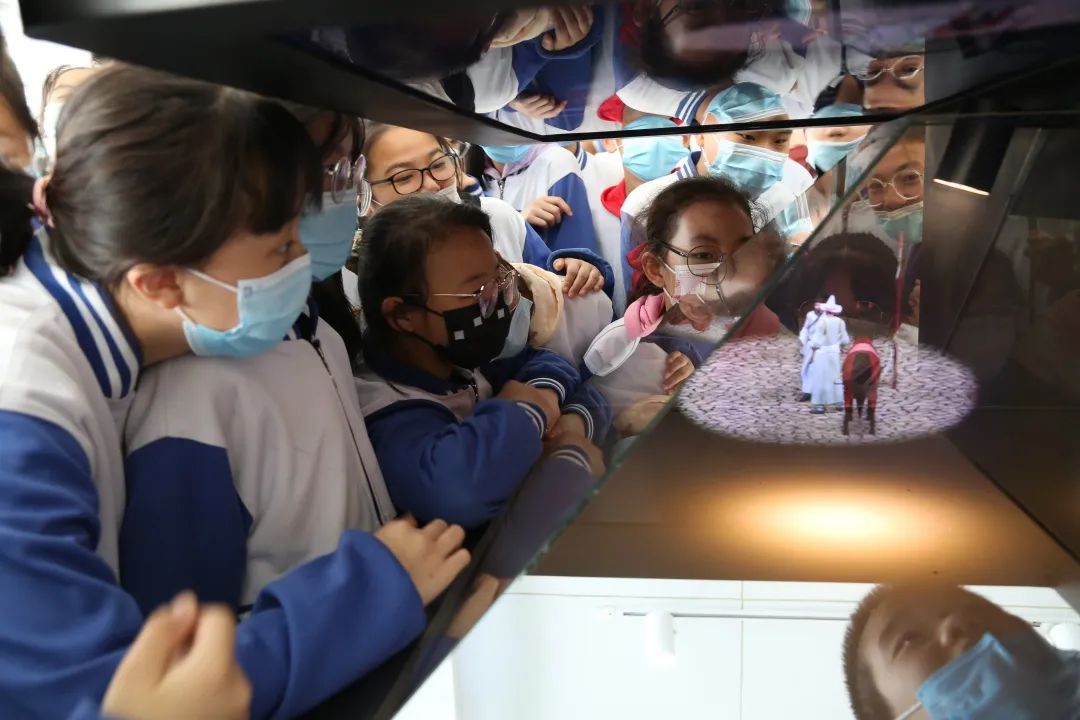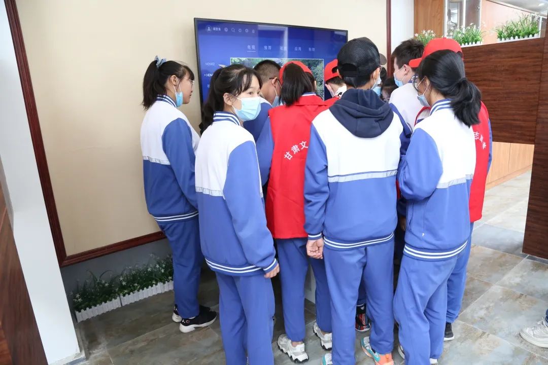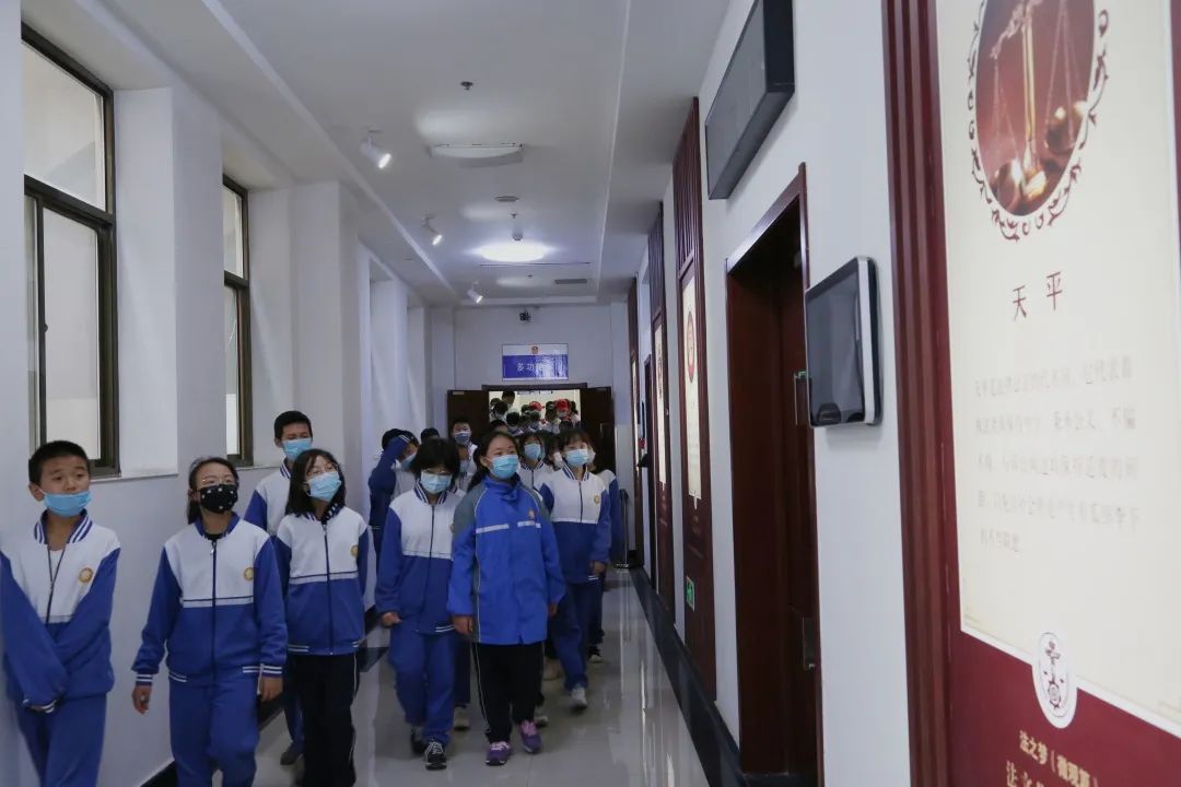 在法院干警的引导下,同学们走进法院的审判大楼,亲身感受法院建设。在一楼南大厅,干警向同学们介绍了“法兴民安”浮雕中蕴含的法重如山、法平如水的司法理念;参观诉讼服务中心时,同学们亲手操作了24h自助立案系统,体验和学习了法院立案和审理流程;坐在少年审判法庭的审判席上,同学们过了一把当法官的瘾;文化长廊两旁的版画向同学们普及了相关的法律常识,让他们真切地感受到了法院的庄严与神圣。