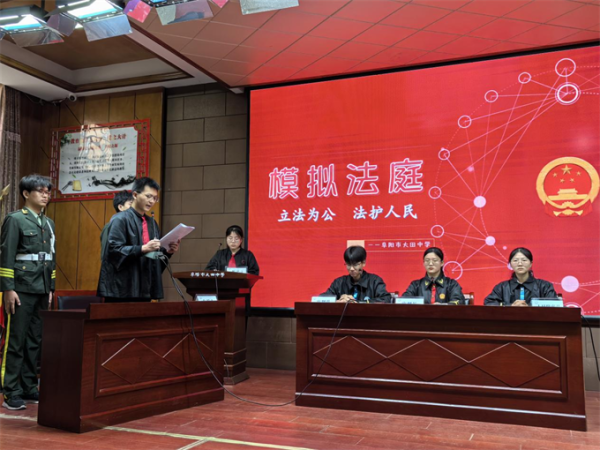 “请大家安静,下面宣布法庭纪律......”随着法槌的敲响,一起以青少年抢劫案改编的模拟法庭正式开始。今年的12月4日是第22个全国法制宣传日,颍州区西湖镇团委联合镇司法所、阜阳市大田中学,共同举办“青春与法同行 青少年‘模拟法庭’”暨“12·4”法律宣讲进校园活动,让同学们在庭审场景中接受法治教育,提高法治意识。