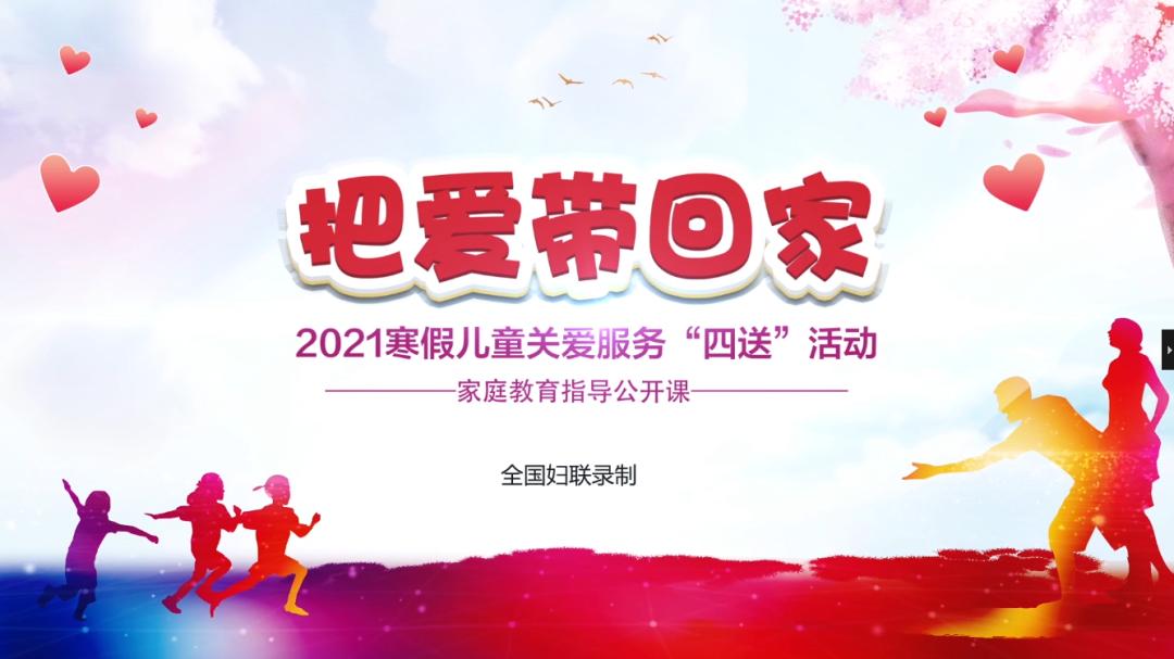 为使广大少年儿童度过一个健康、安全、温暖、幸福、充满爱的寒假,全国妇联联合教育部、民政部、国家卫生健康委等10部门下发通知,在2021年寒假共同开展“把爱带回家”儿童关爱服务“四送”活动。