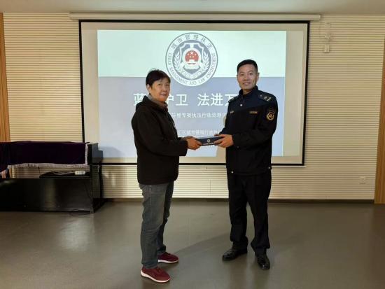 为了增强普法效果,执法队员在活动尾声设置了有奖问答环节,对本次普法重点内容进行回顾,让居民在竞答游戏中体验“法”趣,进而加深对法律的理解。现场气氛热烈,居民们踊跃抢答。“这次活动又能学知识,又能拿奖品,真是太开心了!”一位上台领奖的阿姨成就感满满地说道。