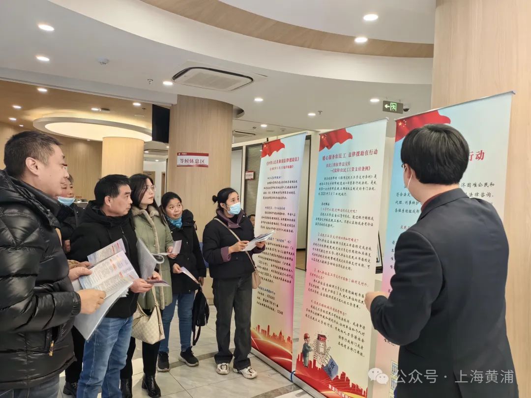 从去年年底开始,黄浦区法律援助中心跨前一步多次组织律师针对农民工欠薪维权开展普法讲座、法律咨询,提升农民工法治意识,给予企业员工法律建议。区法援中心还前往农民工集中的建筑工地开展维权专项行动,通过摆放宣传展板、发放宣传资料、法律援助咨询等方式,宣传《保障农民工工资支付条例》及《法律援助法》,用通俗易懂的语言让农民工了解维权知识及法律援助申请途径。区法律援助中心还充分利用线上公众号,有针对性地推送法律援助信息,引导农民工依法维权、敢于维权、善于维权。