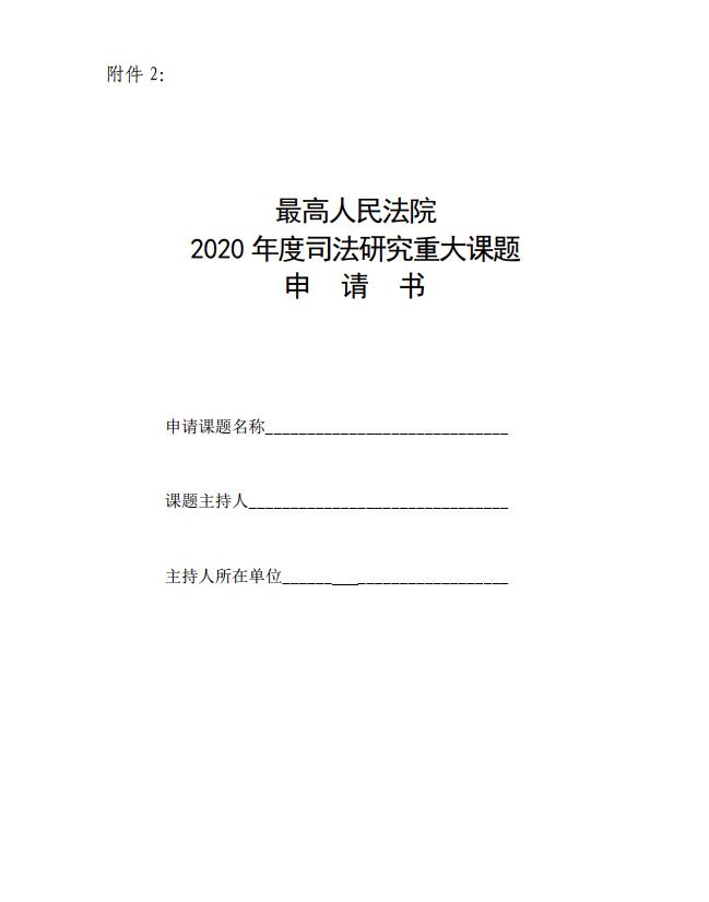 2. 《最高人民法院2020年度司法研究重大课题申请书》