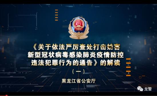 日前,黑龙江省公安厅出台了《关于依法严厉查处打击妨害新型冠状病毒感染肺炎疫情防控违法犯罪行为的通告》,进一步明确妨害新型冠状病毒感染肺炎疫情防控违法犯罪行为。黑龙江省公安厅新闻宣传总队与法制总队联合制作视频解读栏目,以案例+法条为公众深入解读“战役请,保平安”十二条。