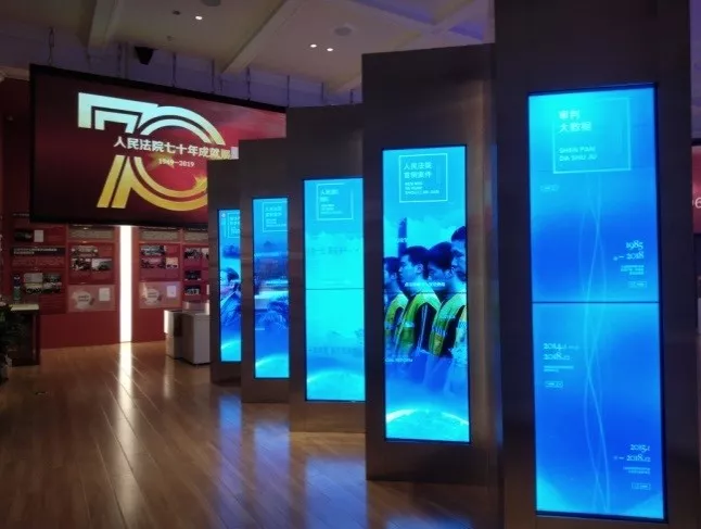 第二展厅内多媒体等信息化展示方式大大增多,通过“动”“静”结合的方式,向我们展现了人民法院在党的坚强领导下,紧紧围绕党和国家工作大局,忠实履行宪法和法律赋予的职责,全面加强各项审判工作所取得的瞩目成绩,以及为全面推进依法治国、加强建设社会主义法治国家做出的积极贡献。